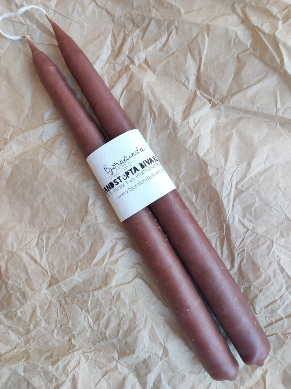 Locally produced candles made from 100% natural ingredients; organic beeswax and herbal colors. Since the candles are naturally made by hand, each candle is unique and has a living surface and varying coloring (shade differences exist) . This also gives the candles a very nice genuine feeling of authenticity. The candles have a matte finish. Choose from different colors and shapes. Thanks to the natural plant colors, the candles are colored throughout.